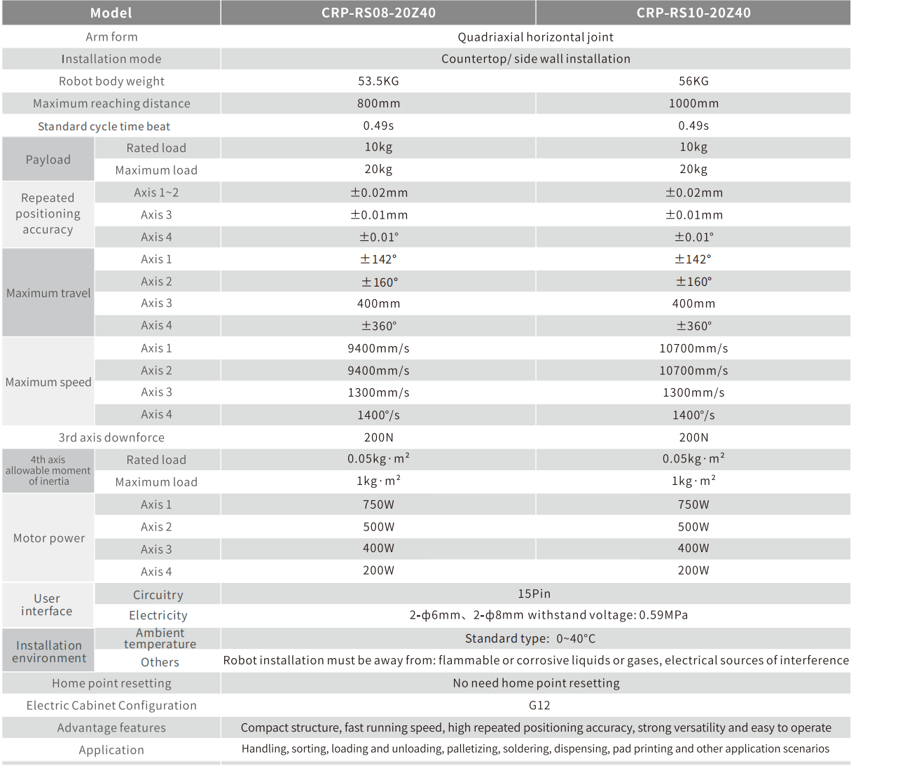 Unique high rigidity arm design, fast running speed, high transmission accuracy, low noise.