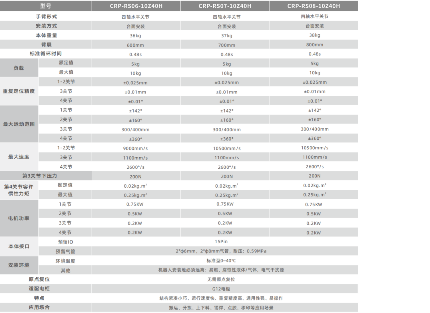 ? 可提供700毫米臂長(zhǎng)規(guī)格,最高有效負(fù)載可達(dá)10kg,額定有效負(fù)載為5kg。