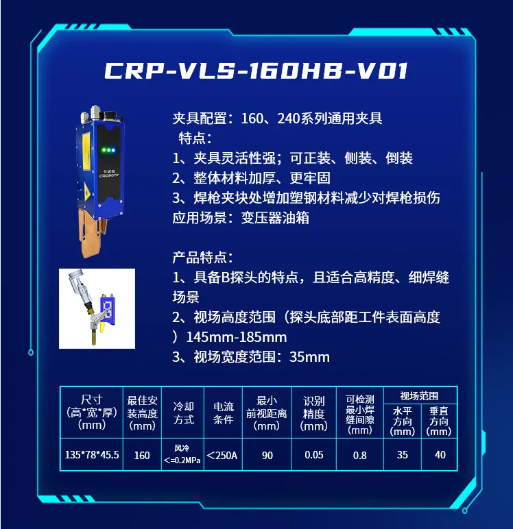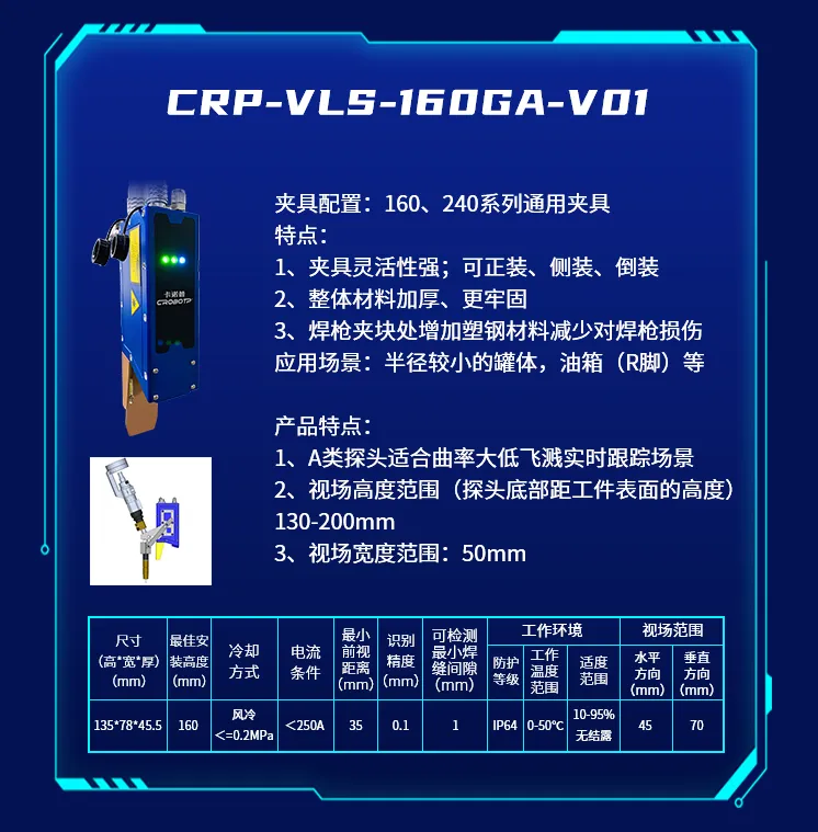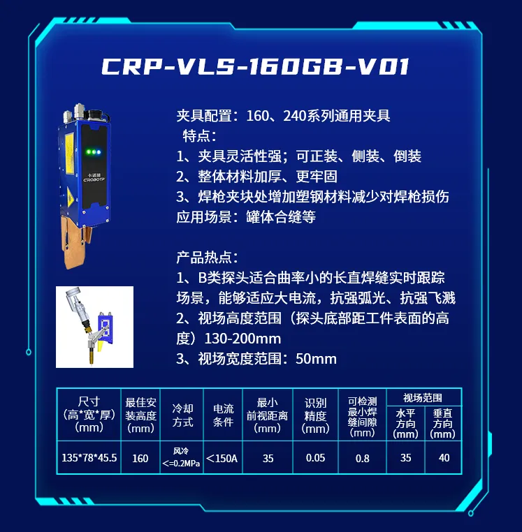為了適應(yīng)不同的焊接場景,推出了CRP-VLS-330GB-V01新款機型激光焊縫跟蹤器