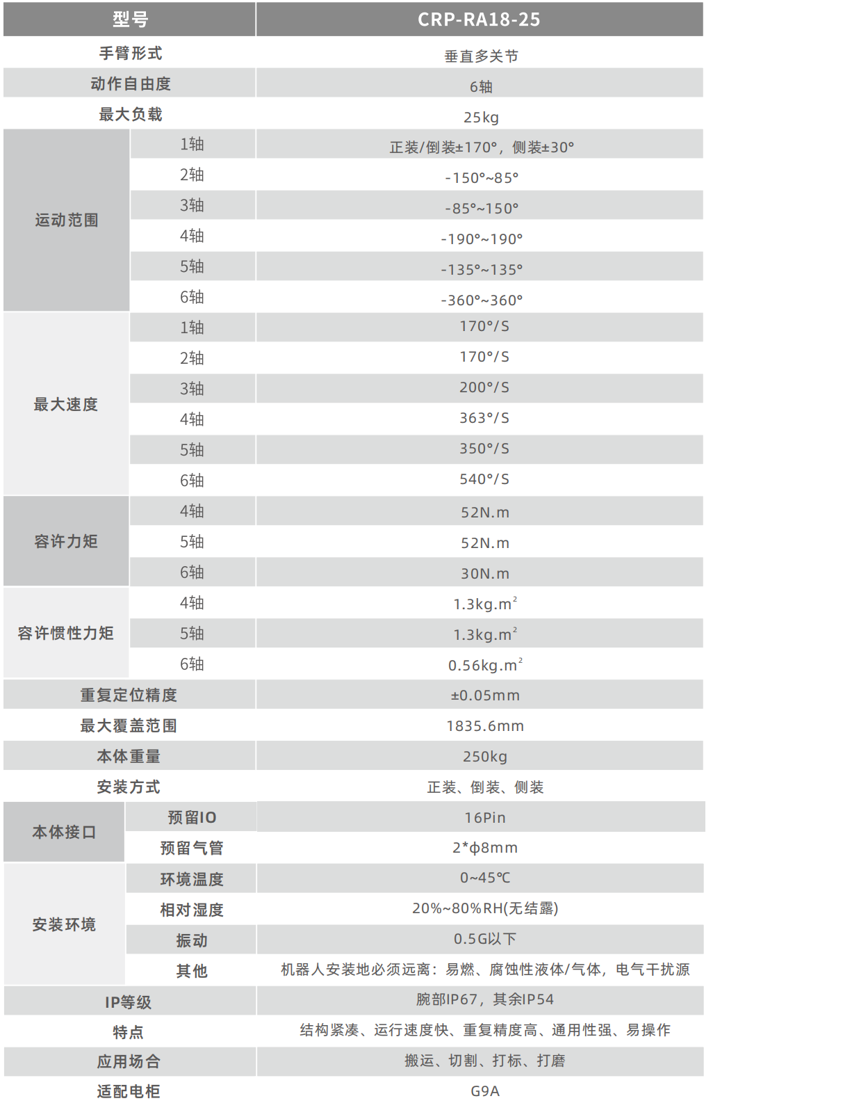 機(jī)器人剛性高,采用高速電機(jī),節(jié)拍更快。機(jī)器人電機(jī)采用密封設(shè)計(jì),防護(hù)等級(jí)高達(dá)IP67,適應(yīng)更惡劣的應(yīng)用環(huán)境。