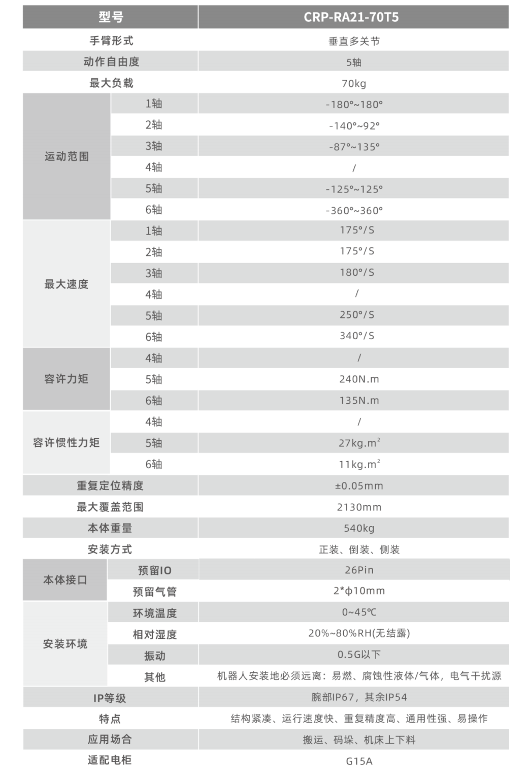 運(yùn)行速度快,重復(fù)定位精度,適用于搬運(yùn)、裝配、打磨等場景。